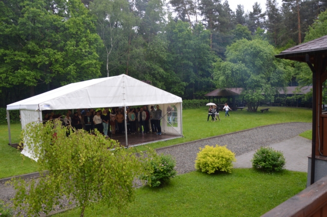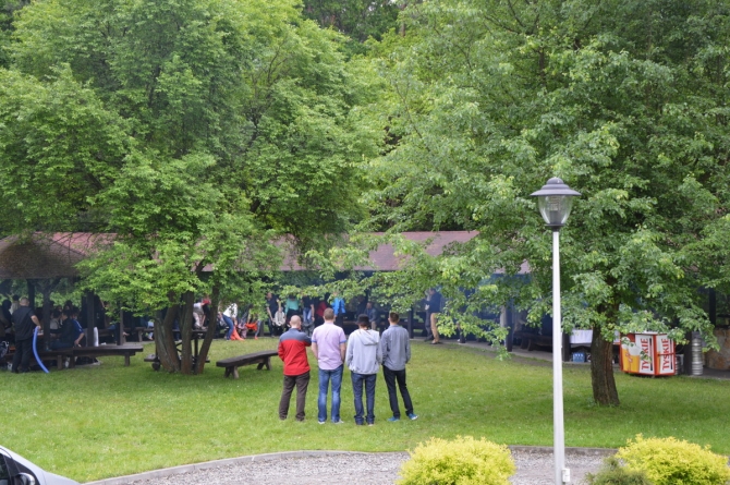 Kwatera położona jest w przepięknej leśnej okolicy, przy trasie łączącej Beskidy z Aglomeracją Górnośląską – zjazd na Kobiór. Impreza została zorganizowana na zewnątrz kwatery, pod wiatą grillową, w ogrodzie: http://www.kwateraosowiec.pl/galeria.html