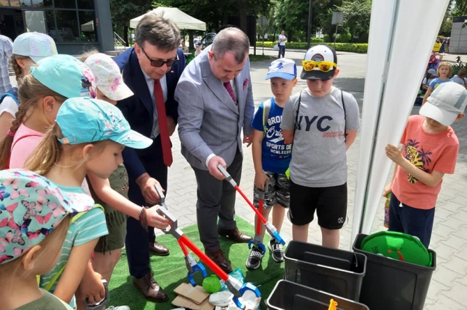 Dzieci korzystały z zaproponowanych warsztatów powiązanych z tematyką segregacji odpadów, smogu, upcyclingu.
